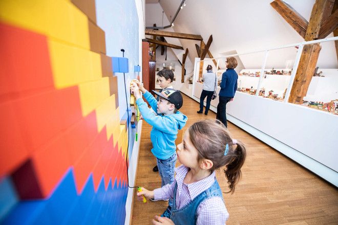 Nach der Stärkung machen wir uns auf ins 5-Elemente-Museum. Der Eingang liegt ein paar Schritte weiter, neben der Ybbs – unübersehbar dank der modernen Glasarchitektur. Wir lösen unsere kostenlosen Tickets mit der CARD und erkunden die Ausstellung. Das Museum gliedert sich in verschiedene Bereiche: Mit den 5 Elementen Erde, Holz, Metall, Feuer und Wasser wird die interessante Geschichte der Stadt Waidhofen kreativ erzählt. Die vielen Mitmachstationen haben wir natürlich ausprobieren müssen – jetzt weiß ich, wie sich das Gewicht eines Ritter-Kettenhemds am eigenen Leib anfühlt!