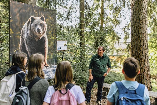 Der Bärenwald in Arbesbach ist eine Auffangstation für alte und schwache Bären, die aus Zirkus, Zoo und Privathaltung kommen und nun in einem naturnahen, tiergerechten Zuhause leben dürfen. Derzeit leben sechs Braunbären in unterschiedlichen Gehegen, wo verschiedene Beschäftigungselemente, Planschzonen und Rückzugsorte für sie bereit stehen. Es kann daher sein, dass man nicht sofort einen Bären sieht – aber mit etwas Geduld kommen sie hervor, schwimmen eine Runde im „Pool“, suchen nach fruchtigen Naschereien oder streifen in ihrem Territorium herum.
