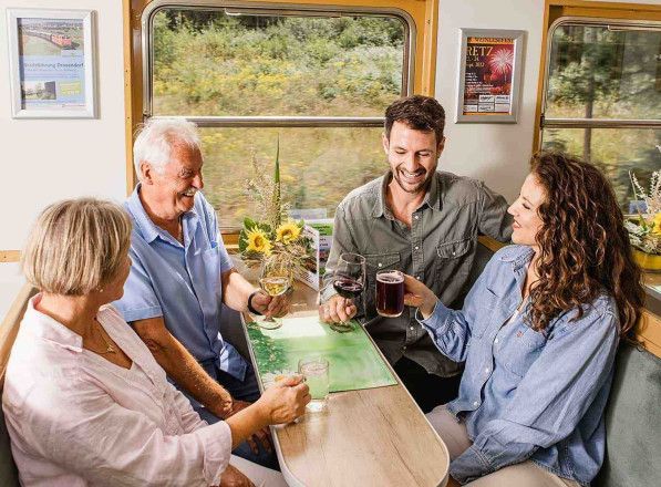 Um 15 Uhr heißt es für uns: Zurück zum Reblaus-Express, um die Heimfahrt nach Retz im Heurigenwaggon mit Traubensaft, Blauburgunder und superleckeren Aufstrichbroten anzutreten.