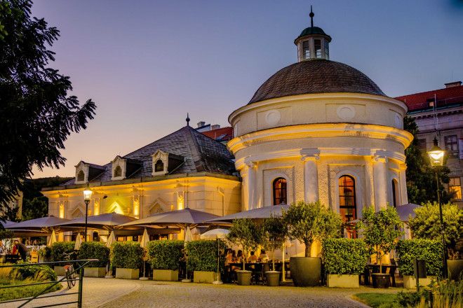 Im östlichen Teil des Schlossparks bietet uns das grüne Lusthaus, ein Kunstwerk architektonischer barocker Gartenkunst, dem einstigen Lieblingsplatz der Kaiserin Maria Theresia, einen wunderbaren, ruhigen Schattenplatz für unseren letzten Stopp im Schlosspark fernab des Getümmels von BesucherInnen. Der Pavillon, dessen Kuppel mit einem eindrucksvollen Jagdgemälde versehen ist, eröffnet durch seine 8 Achsen freie Sicht auf die Landschaft und durchdringt das umliegende Waldstück. Über die beeindruckende Löwenbrücke und dem ältesten Gebäude der Parkanlage Laxenburg aus dem 13. Jahrhundert, dem Alten Schloss, das das Österreichische Filmarchiv beherbergt, gelangen wir zurück zu unserem eigentlichen Startpunkt des heutigen Ausfluges.